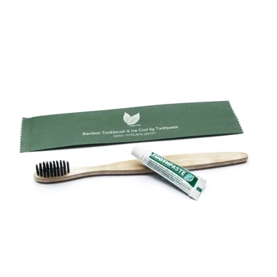Buy Bamboo Toothbrush & Vegan Toothpaste 5g. Perfect for world travels amenities, business trips, hotel guest amenities, camping survival kits, comfortable flights, charity initiatives, and as a gift of dignity to refugees and households. Wholesale online at the best price for bulk purchases, brought to you by ToiletryExpress.co.uk