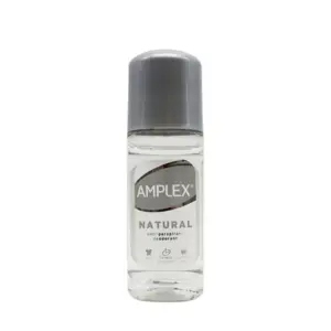 Amplex Natural Anti-Perspirant Roll On. 24 hour protection, suitable for sensitive skin, no colourants used, Alcohol free ensures high skin tolerance, contains Aloe Vera, kind to skin and anti-stain formula. Made from high-quality trasparent PET plastic.