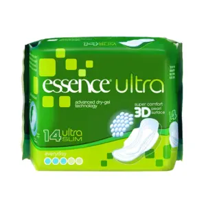Essence Ultra Slim Everyday Sanitary Pads – 14 Pads, Ultra Comfortable Pad design Ultra-Absorbant Flow Locking System Advanced Dry-Gel Technology Centre Flow Capacity With advanced, dry gel technology and aero texture padding, new, advanced Essence can be relied upon to provide the comfort and protection you need, so you remain comfortable and dry in your daily life. Brought to you byToiletryExpress.co.uk