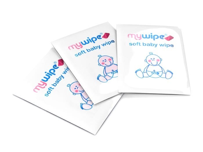 MyWipe Soft Baby Wipe Sachet mywipe ultra soft baby wipes are now available in handy sachets, perfect for vending machine supplies, airline, hotel, complimentary or travel accessory packs. The small sachet contains a soft spun laced tissue wipe measuring