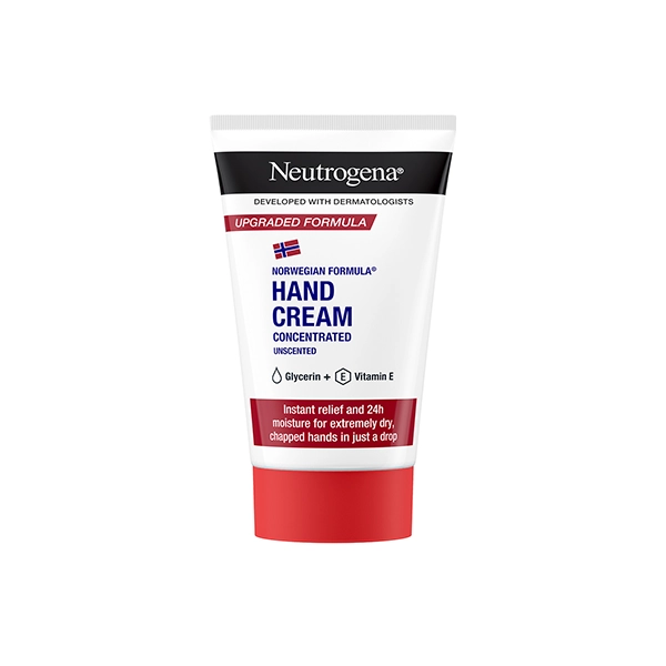 Get instant relief from extremely dry, chapped hands with Neutrogena Norwegian Formula Hand Cream Concentrated (Unscented). Developed with dermatologists, this glycerin-enriched formula provides 24-hour moisture, leaving your hands soft, smooth, and protected. Just a small amount of this unscented hand cream delivers long-lasting hydration, soothing even the driest skin. Enriched with Vitamin E, this dermatologist-tested cream is perfect for sensitive skin and daily use. Experience the ultimate care for your hands with the fragrance-free version of the iconic Norwegian Formula.