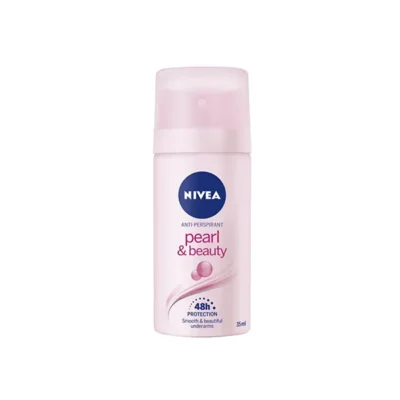 NIVEA Pearl & Beauty Anti-Perspirant Mini Spray 35ml delivers gentle, fresh protection with pearl extracts and avocado oil, suitable for Travel-Size Toiletries and guest amenities. Wholesale Discounted Online.