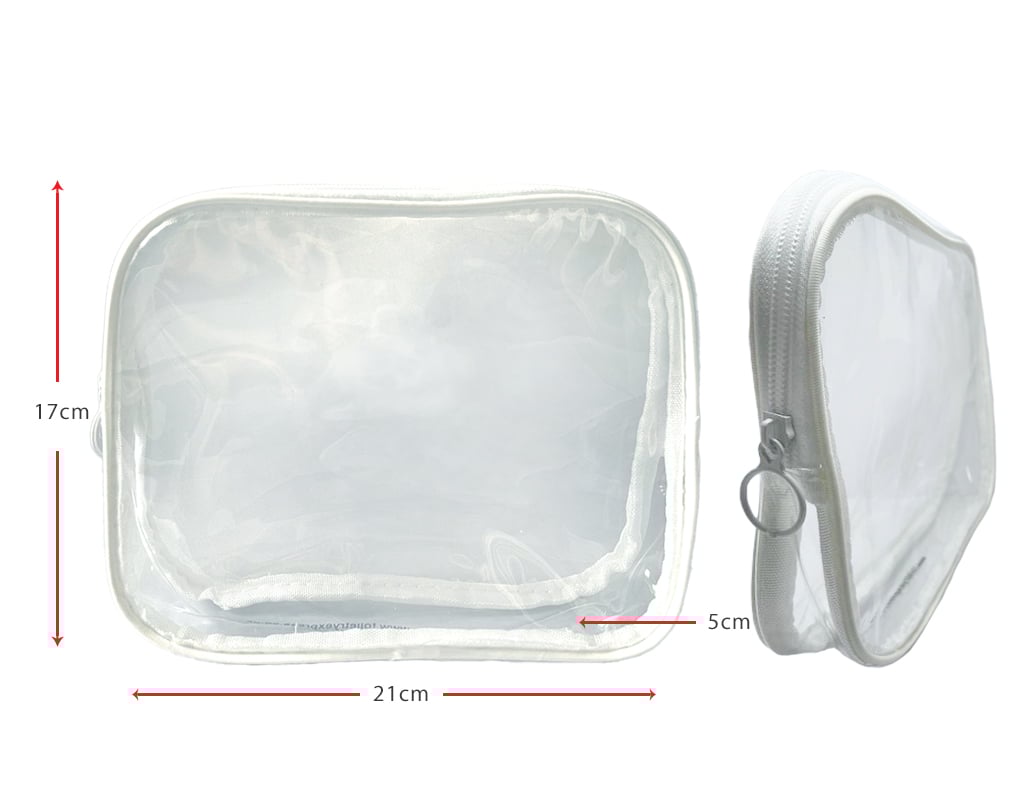 The PVC Clear Cosmetic Luggage Travel Bag – Large White, with white zip closure. Perfect for Airline Approved Travel Size Toiletries, makeup and general cosmetic and Health & Beauty use. Buy online in bulk for unbeatable wholesale prices and make big savings now