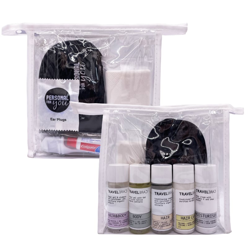 Our Travel Care Toiletry Bag comes with a range of personal hygiene items for all essential care needs. Perfect for travel, hotel, business, kit survival camping, a comfortable flight or a sleepover, charity, gift of dignity to refugees and households brought to you by ToiletryExpress.co.uk