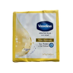 Get soft, nourished skin with Vaseline Healthy Plus Total Moisture Soap (3 x 75g), enriched with soy protein, oat extract, and Vaseline Jelly Ð ideal for daily hydration and gentle cleansing.Would you like me to add this product to a bundle or create